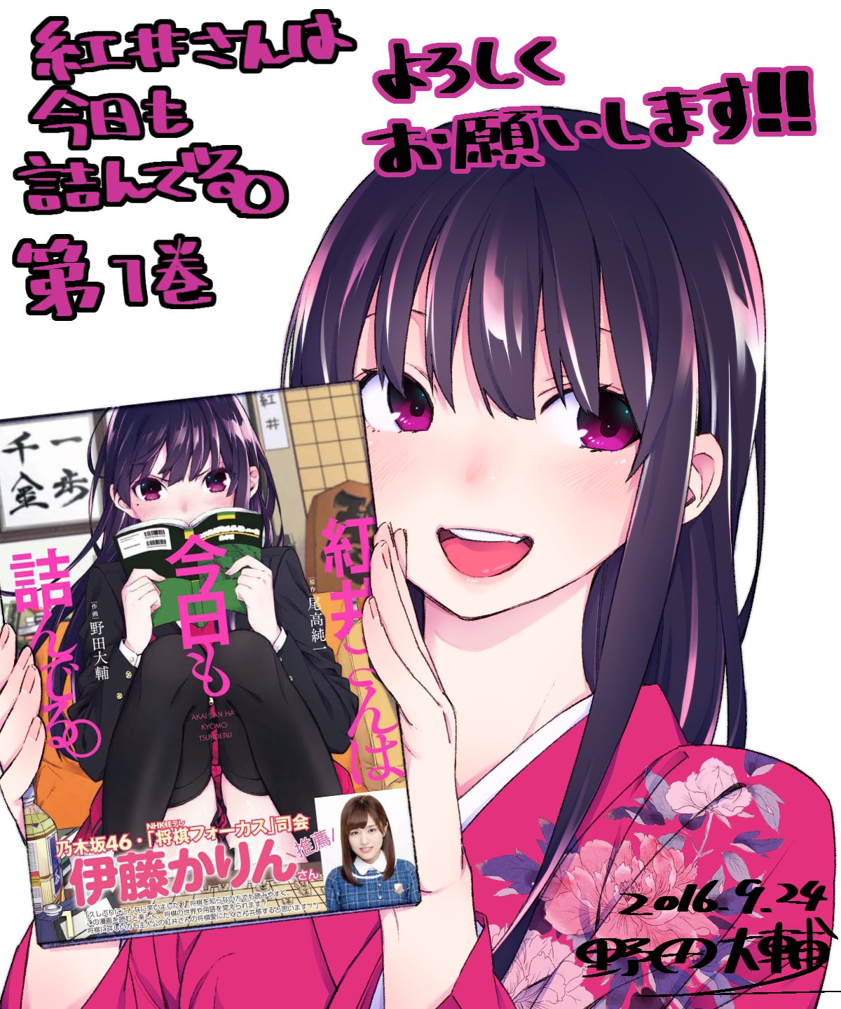 野田大輔 本日9月24日 紅井さんは今日も詰んでる 第一巻発売です 帯に将棋フォーカスの司会を務める 乃木坂46の伊藤かりんさんから推薦文を戴きました 将棋以外ダメダメな紅井さんですが ちょびっとだけ